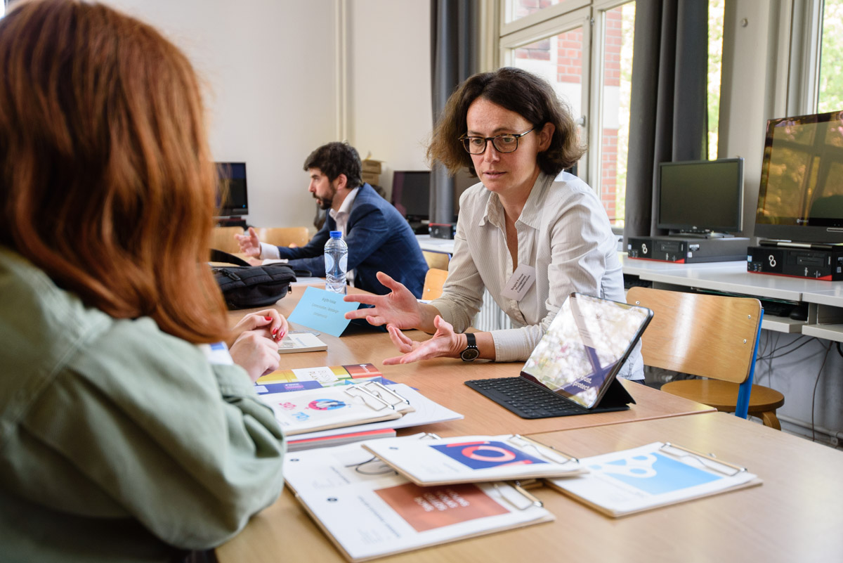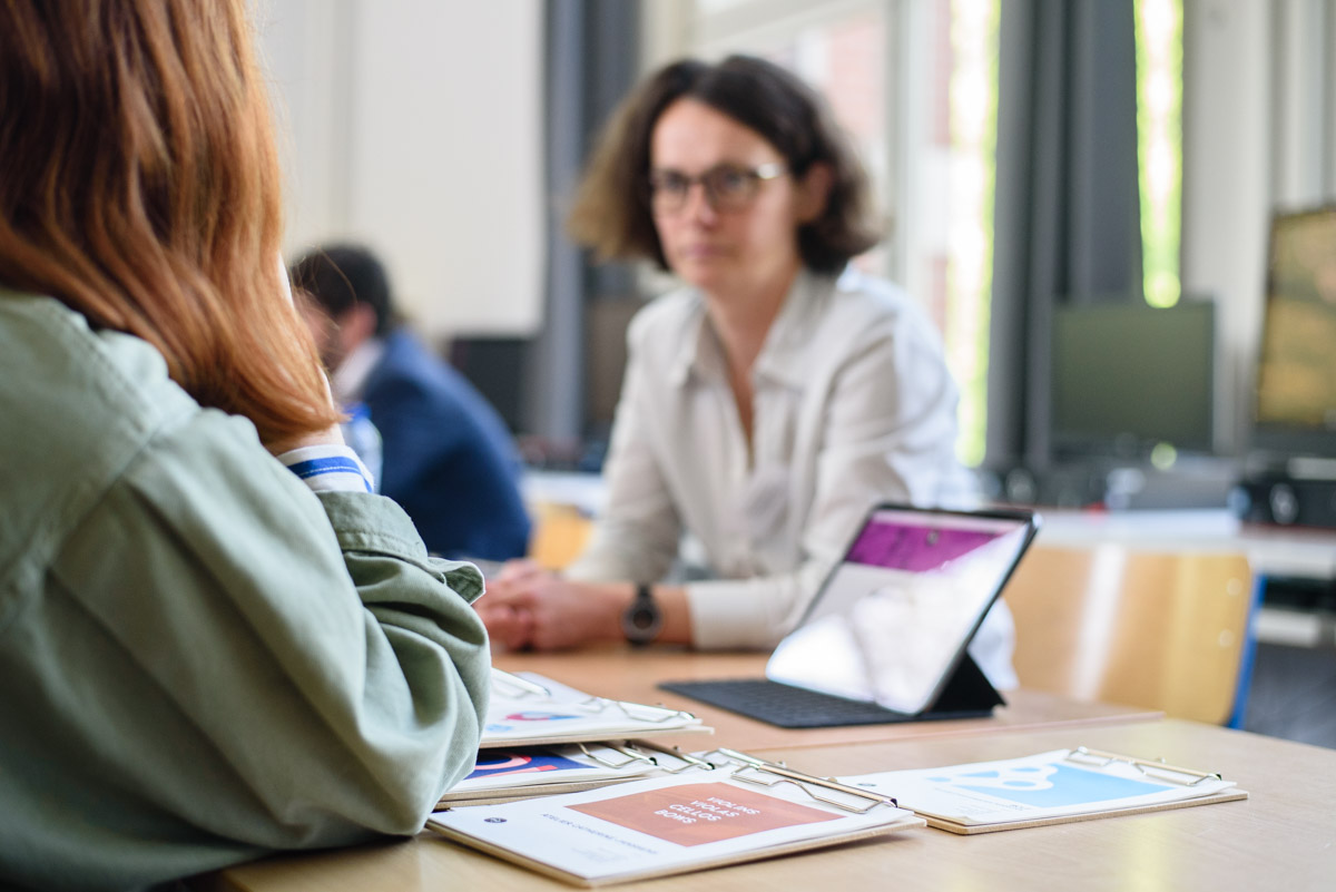 After the welcome in the teachers' room and already some exciting meetings with the other guests, we each went to 'our' class. As soon as the few examples of graphic work were placed on the table, the first pupils arrived. Some of them have a clear vision of what they want to do, others not at all. Some of them know quite well what a graphic designer's work consists of, others much less.
