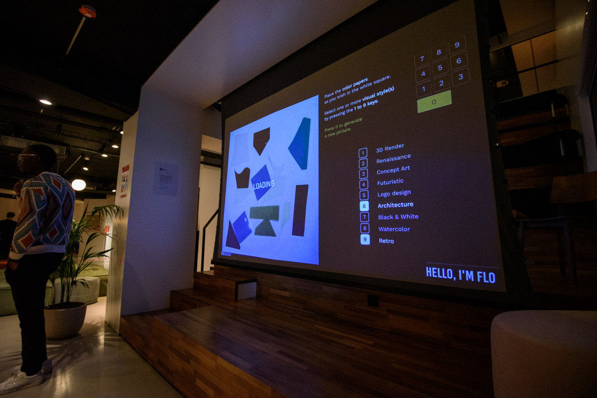 The icing on the cake of this anniversary programme was the confirmation on D-6 of an interactive project around AI and image generation proposed by Florent Schirrer of Hello I'm Flo. This was a good opportunity to extend the reflection on the last subject addressed in the discussion at the beginning of the evening: will artificial intelligence be able to replace us one day in our jobs?